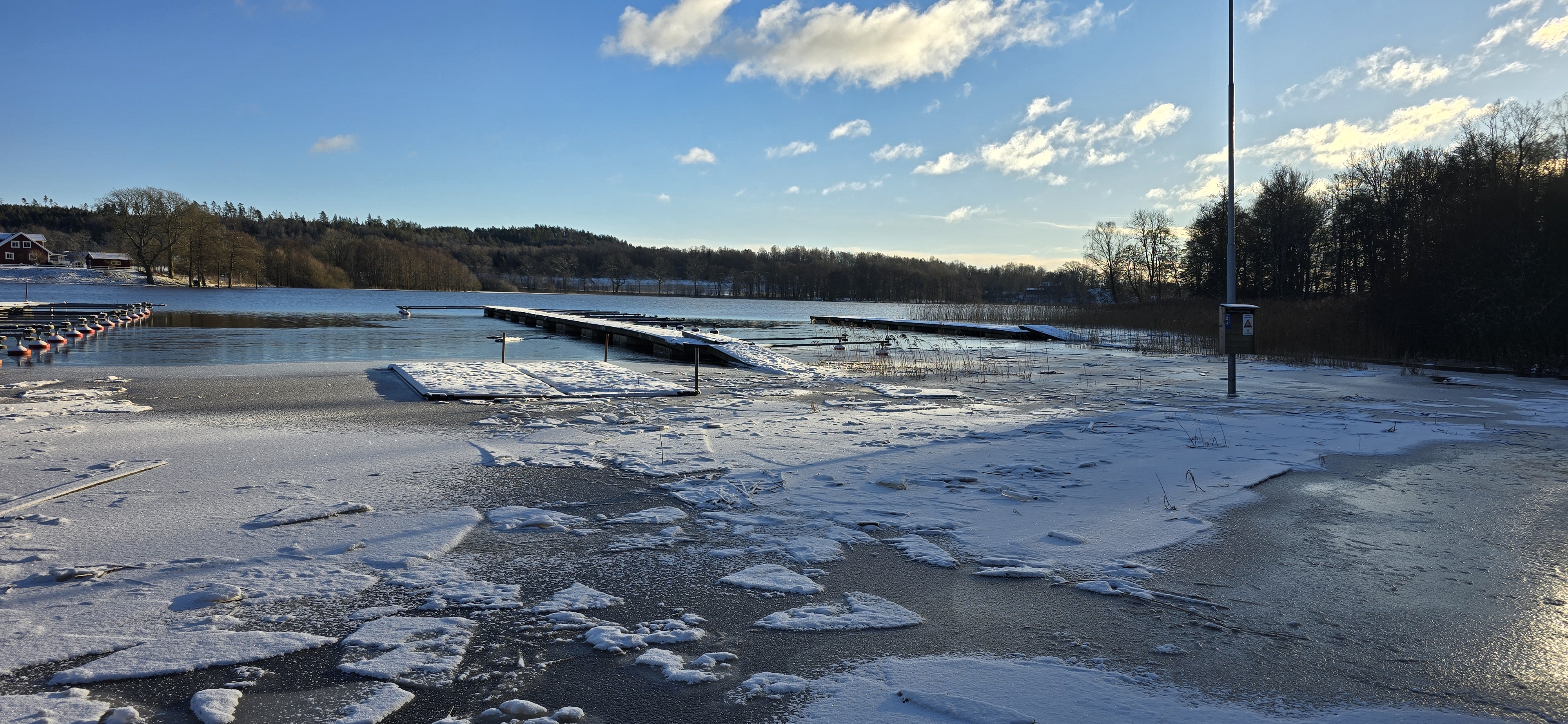 Det är väldigt högt vattenstånd i hamnen, som nu består av Is.