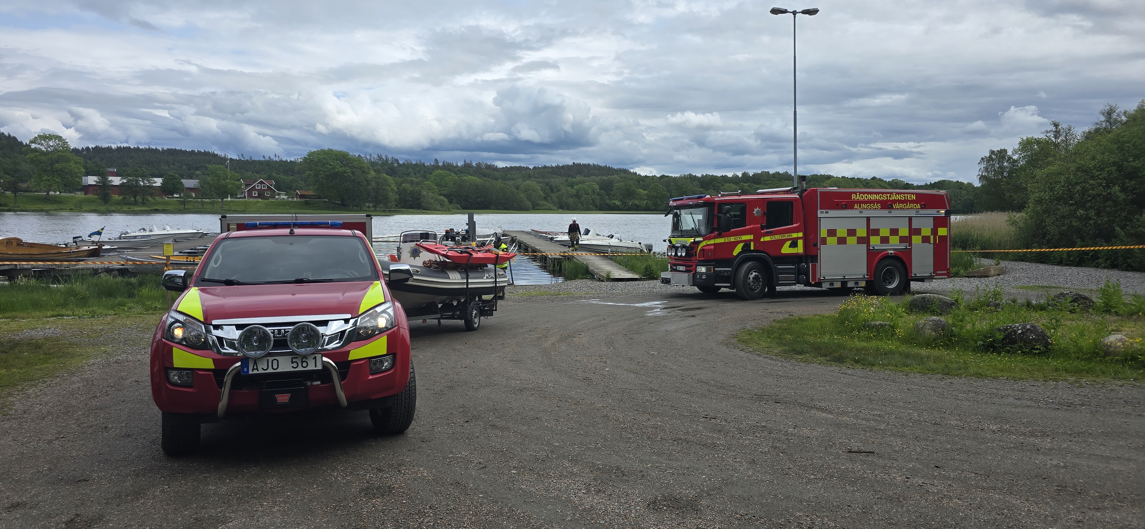 Räddningstjänsten har länsat in området, vilket medför att de som har båtplatser på samma sida som rampen just nu inte kan använda sin båt.