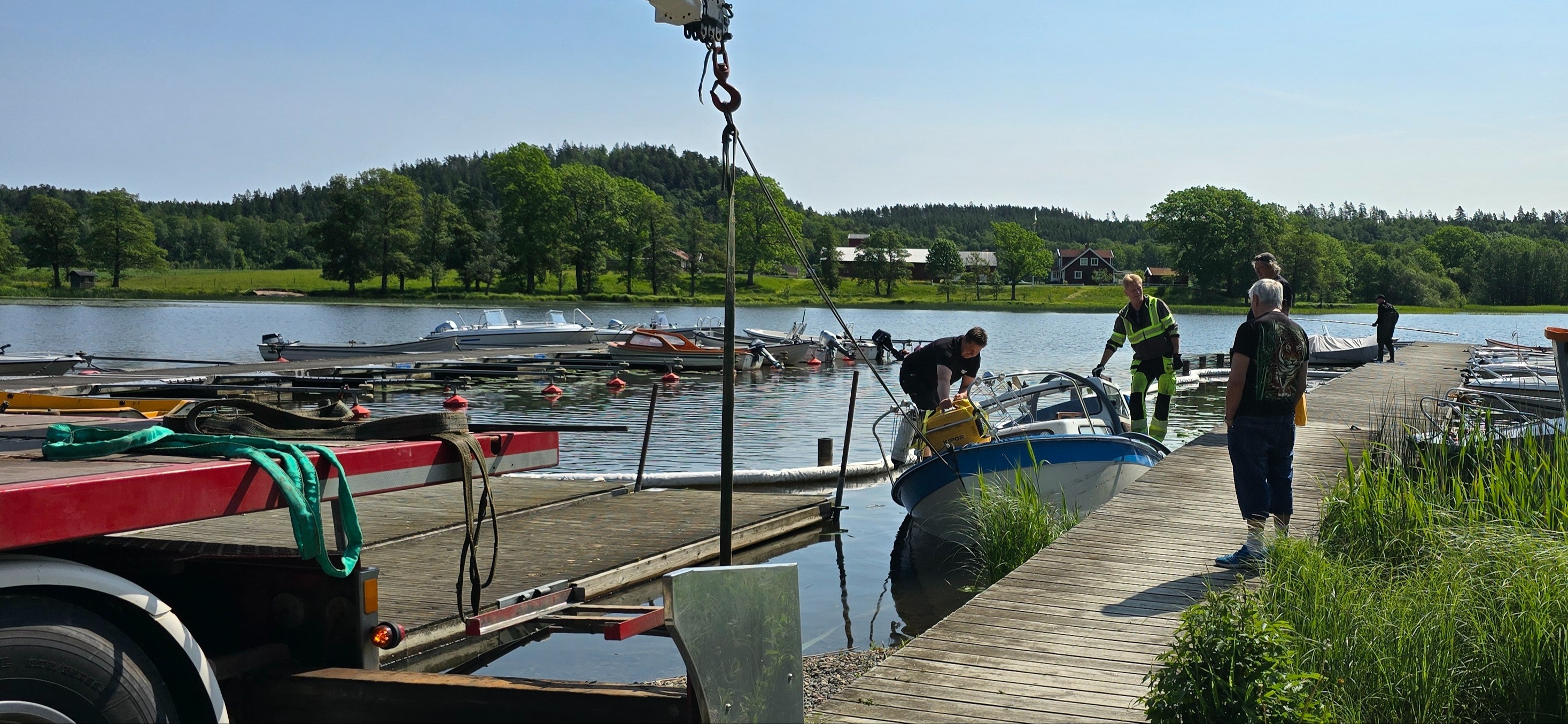 Länsar kommer ligga kvar så länge miljöinsats pågår. Under denna tid så kommer man inte heller kunna använda rampen för att sjösätta. Hänvisar till rampar i Loo och Kvarnabo.
