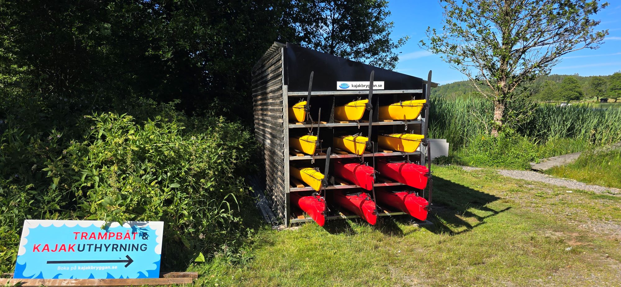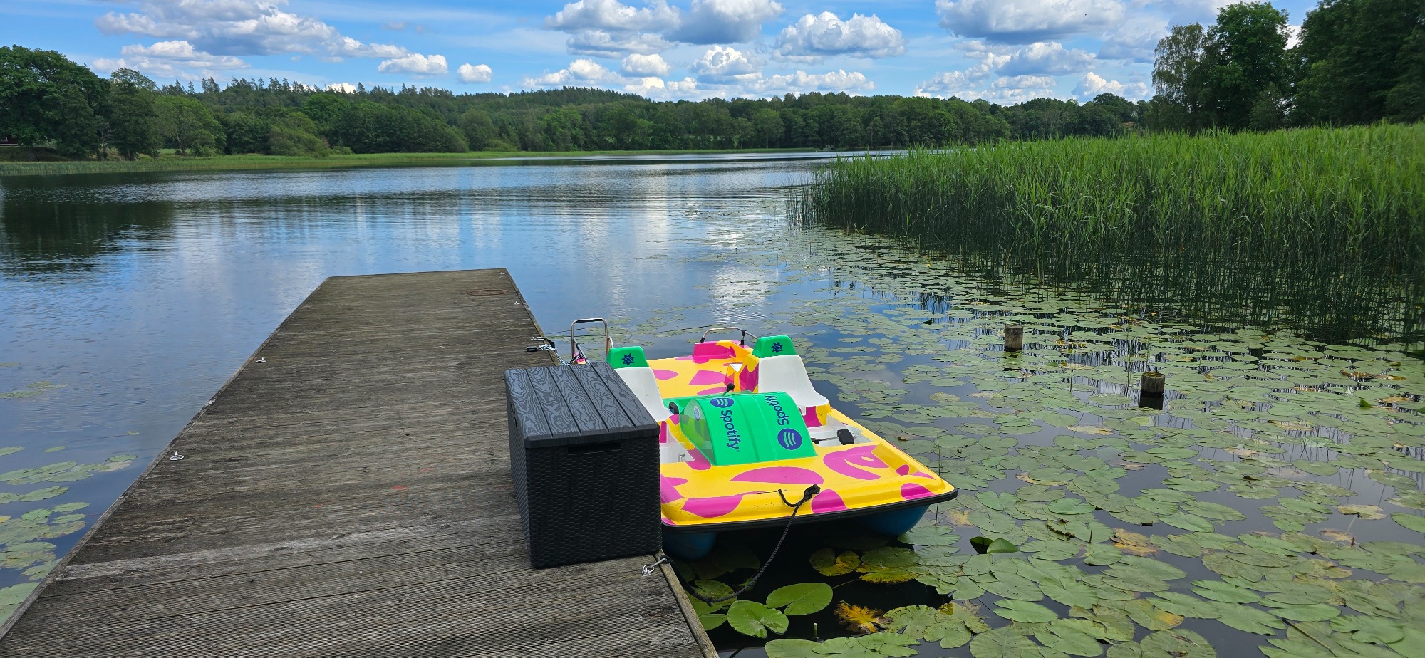 Edit: Någon trampbåt har jag inte sätt till än. Nu har även trampbåten kommit på plats, intill den finns även en box för flytvästar.
